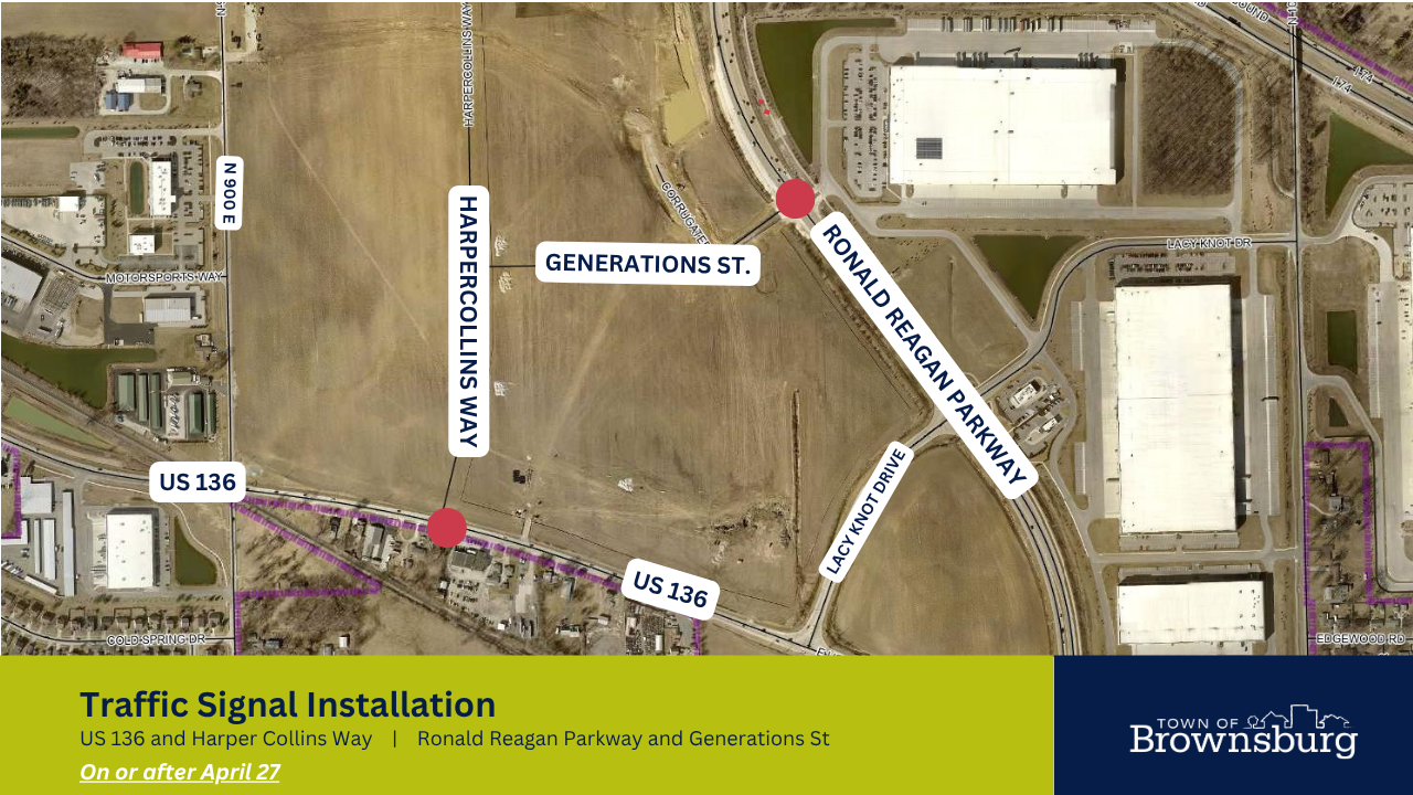 One will be located at US 136 and Harper Collins Way. The other will be located at Ronald Reagan Parkway and Generations St. See the attached map for specific locations.